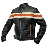 Interstate Leather Mens Stripe Jacket (Black/Orange, Medium)